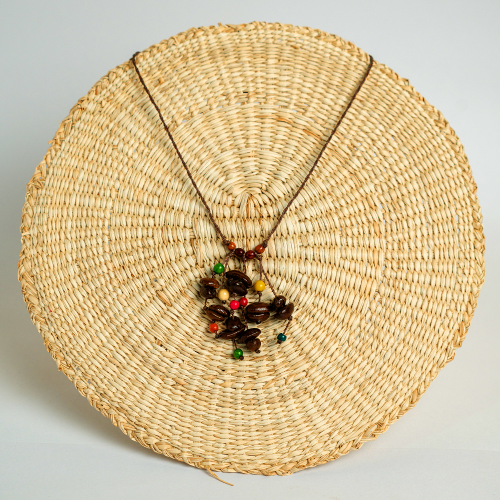 Hecho con semillas de café tostado y conservadas, semillas de achira, tamaño regulable.